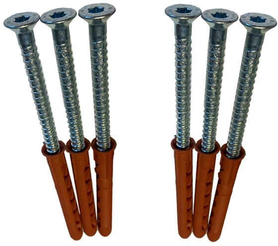 6x Schrauben M10 x 100 mm, inkl. Kunststoffdübel