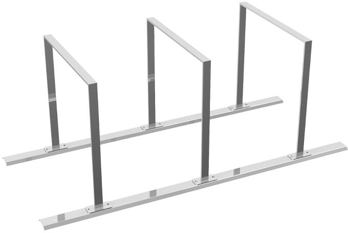 Reihenanlage/Fahrradanlehnbügel mit Schienensystem aus Flachstahl, 50 x 12 mm
