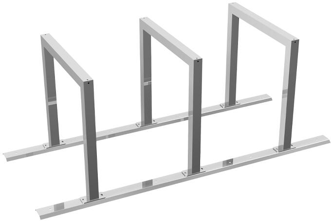 Reihenanlage/Fahrradanlenbügel mit Schienensystem aus Stahlrohr, 60 x 60 mm