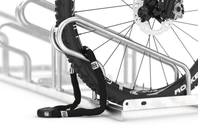 Fahrradständer HYBRID, bis 64 mm Reifenbreite, einseitiges Einstellen, Stahl, feuerverzinkt, mit Anlehnbügel und Stahl-Rundösen 3 Varianten 3 - 6 Werktageab 229,- €*